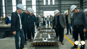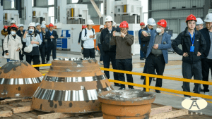 8日上午,参会嘉宾一行前往鑫矿智维铸造中心参观交流。董事长刘敏率团队热情接待,铸造中心负责人吴峰全程陪同讲解。嘉宾们实地考察了高度自动化的生产线、智能管理系统及规范高效的作业流程,对鑫矿智维在智能制造与绿色运营方面的实践成果给予了高度评价。